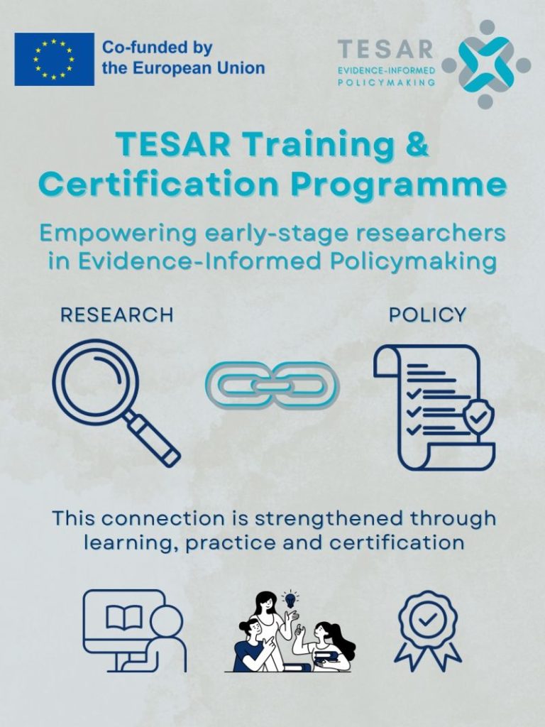 We’re excited to announce the start of the development of TESAR’s Training and Certification Programme on Evidence-Informed Policymaking (EIPM)!This programme will equip early-stage researchers with the competences to bridge the...